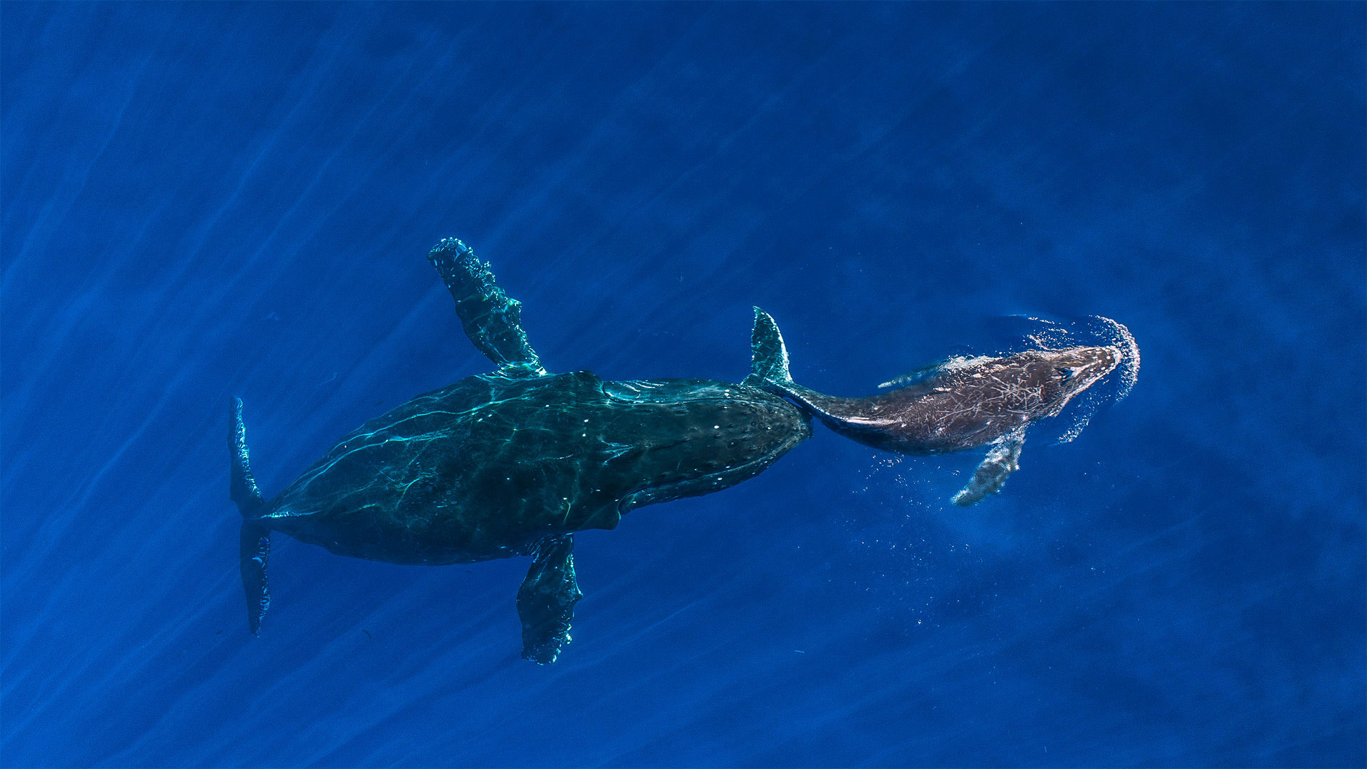 Humpback whale mother pushes her sleeping calf to the surface, Maui, 夏威夷州 (© Ralph Pace/Minden Pictures)