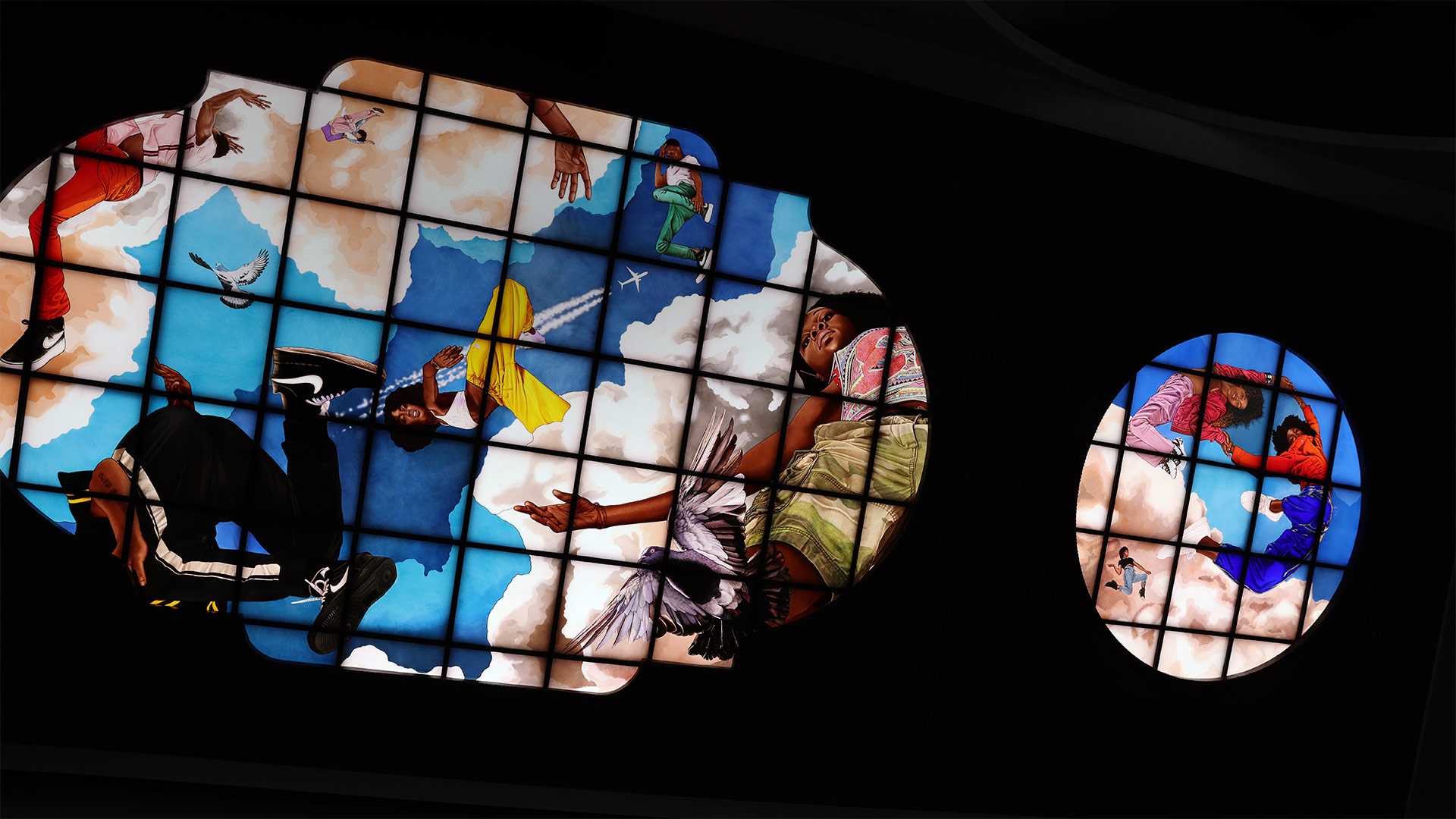 'Go' by Kehinde Wiley, displayed inside Moynihan Train Hall at 纽约市's Penn Station (© Spencer Platt/盖蒂图片社)