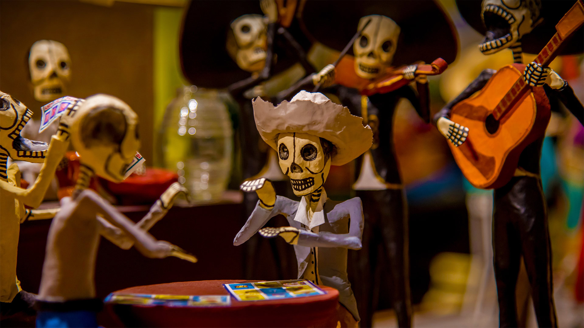 Skeleton figures (calacas) dressed up for Día de los Muertos celebrations in 墨西哥 (© Amelia Fuentes Marin/盖蒂图片社)