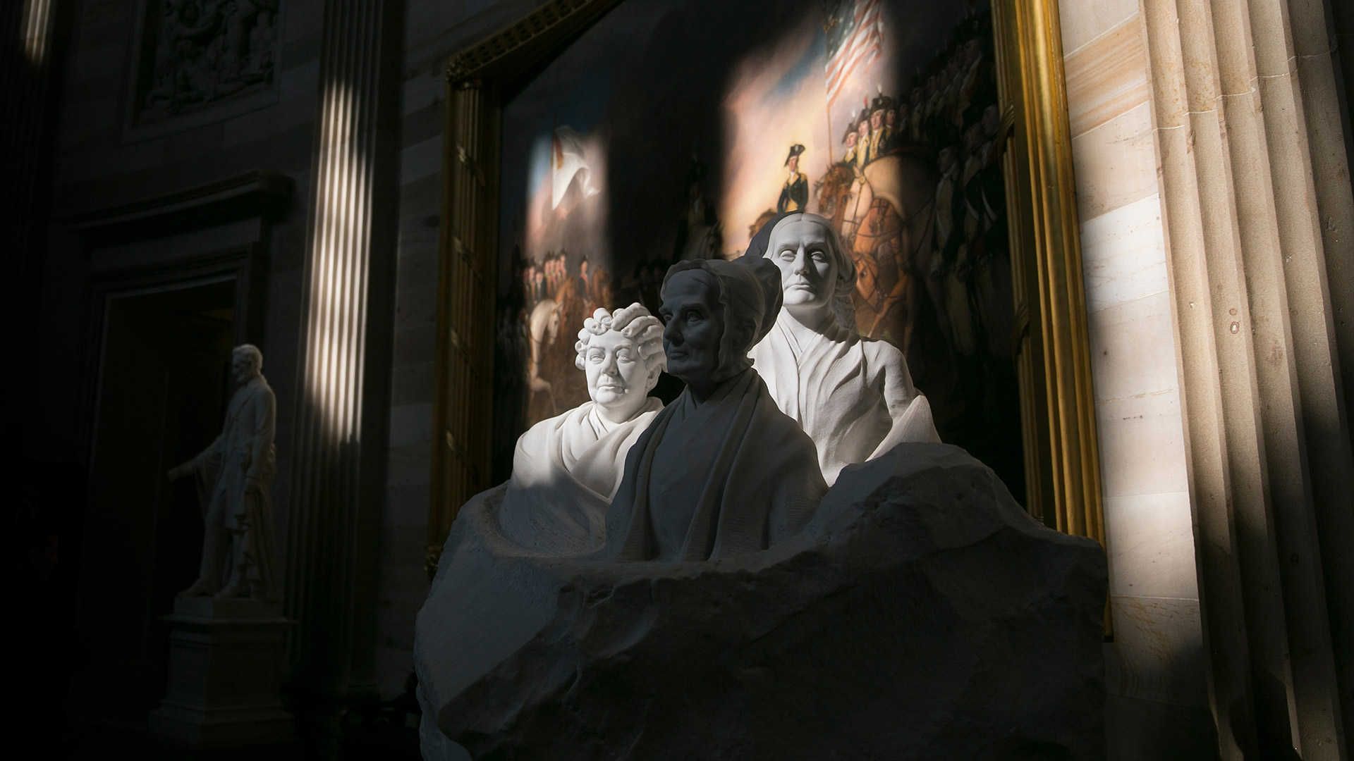 Portrait Monument of women's suffrage pioneers, Capitol Rotunda, 华盛顿, DC (© Andrew Harrer/Bloomberg/盖蒂图片社)