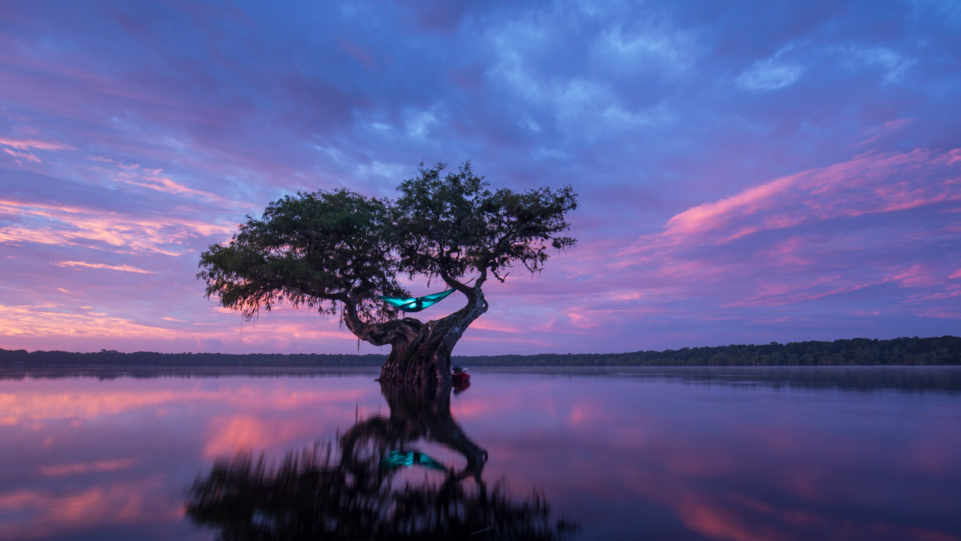 Hammock camping in a bald cypress tree
