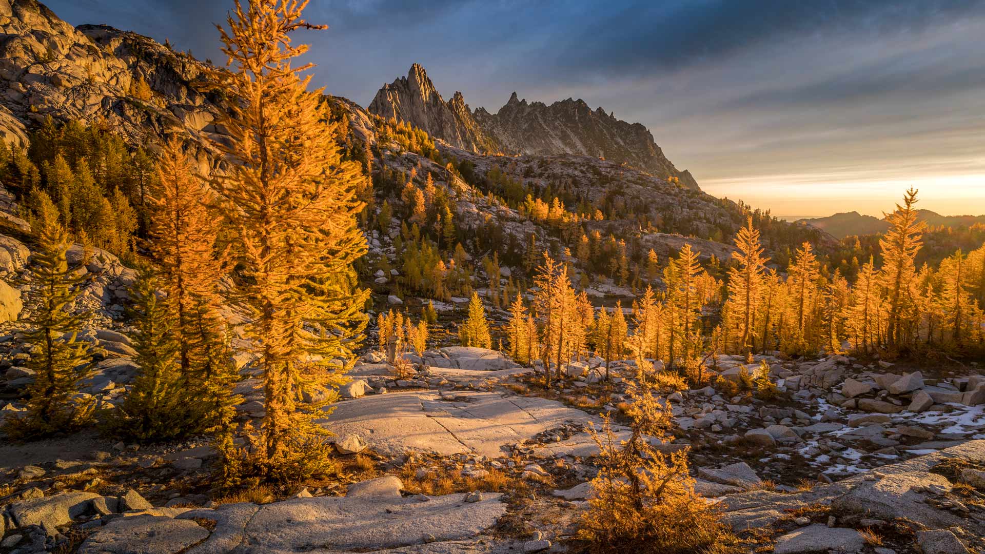 Golden larches and Prusik Peak, the Enchantments, 华盛顿 (© Jim Patterson/Tandem Stills + Motion)