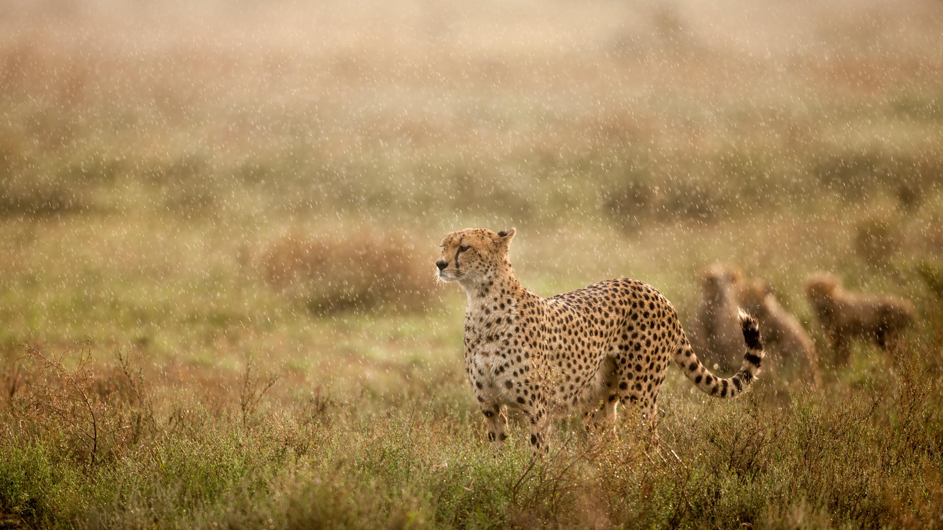 Cheetah in morning rain, Ndutu Plains, Ngorongoro Conservation Area, 坦桑尼亚 (© Paul Souders/盖蒂图片社)